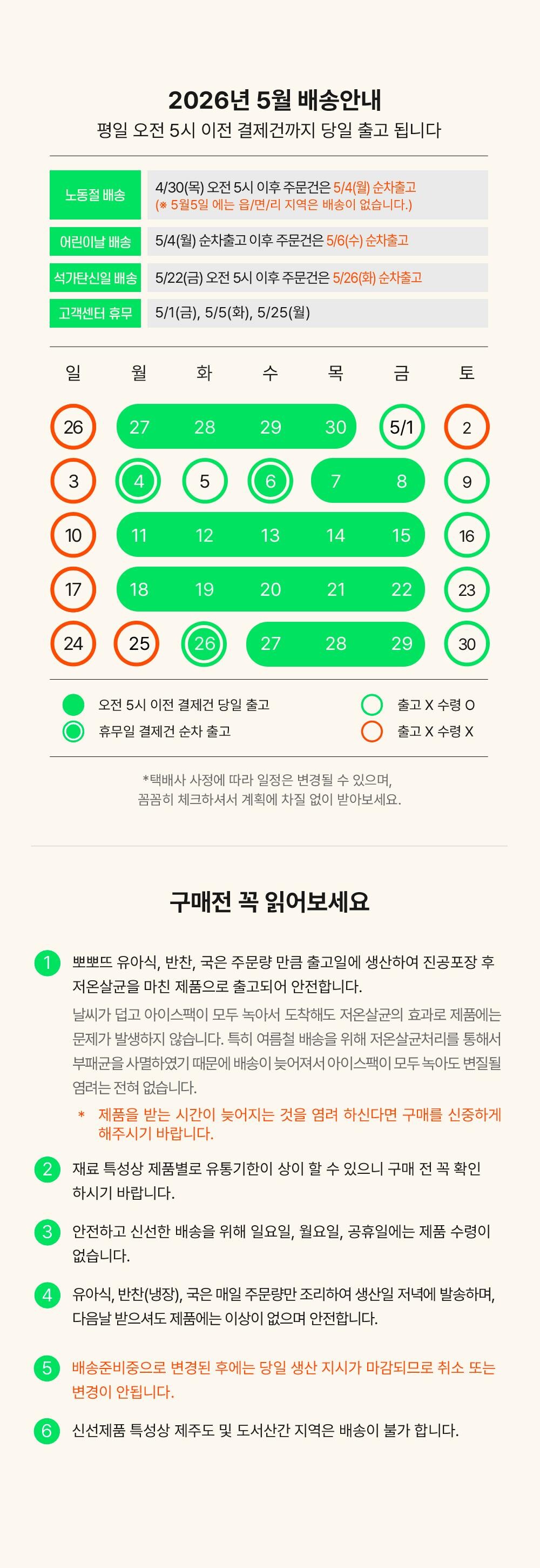 2026년 5월 배송달력